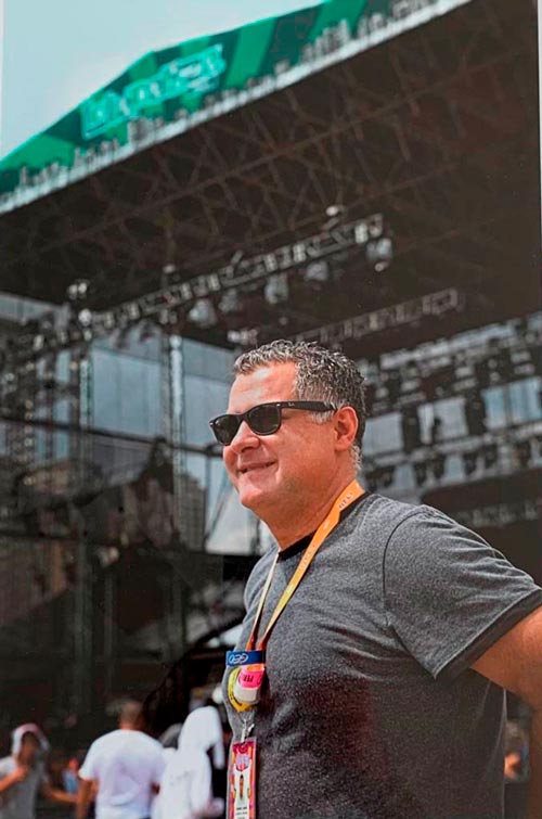 Esse aí sou eu, Leonardo Ganem, quando era presidente da Geo Eventos e trouxe o Lolapalooza para o Brasil. Também já fui presidente da Som Livre e consultor da Mckinsey. Hoje, sou estrategista financeiro, sócio sênior e CFO da Santa Clara, uma grande agência de publicidade.